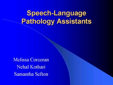 SpeechLanguage Pathology Assistants PowerPoint PPT Presentation