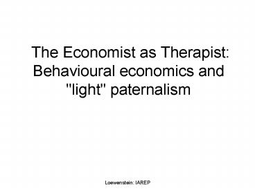 Title: The Economist as Therapist: Behavioural economics and "light" paternalism