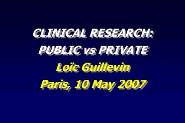 1CLINICAL RESEARCH PUBLIC vs PRIVATE Loïc