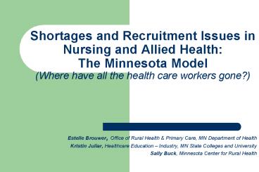 Title: Shortages and Recruitment Issues in Nursing and Allied Health: The Minnesota Model Where have all th