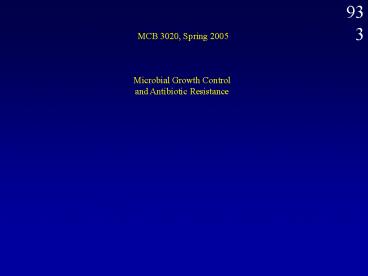 1MCB 3020, Spring 2005 Microbial Growth Control