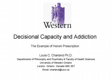Decisional Capacity and Addiction The Example of Heroin Prescription PowerPoint PPT Presentation