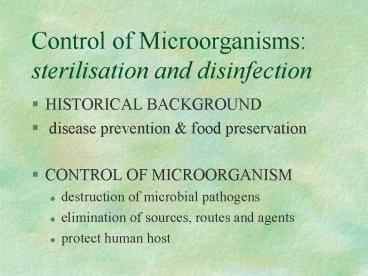 Control of Microorganisms: sterilisation and disinfection PowerPoint PPT Presentation