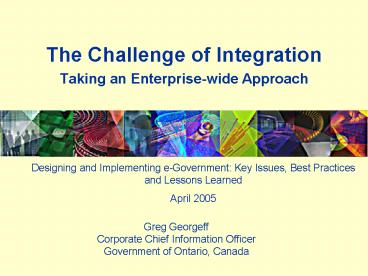 within and beyond IIT, including - An enterprise approach to IIT planning,