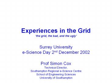 <Notice: Removed> Experiences%20in%20the%20Grid%20 PowerPoint PPT Presentation