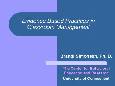 Title: Evidence Based Practices in Classroom Management