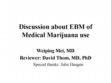 Discussion about EBM of Medical Marijuana use PowerPoint PPT Presentation