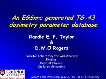Title: An EGSnrc generated TG43 dosimetry parameter database