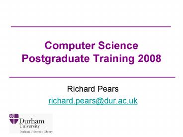 <Notice: Removed> Computer Science Postgraduate Training 2008 PowerPoint PPT Presentation