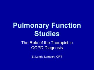 - Chronic Obstructive Pulmonary disease (COPD) is a