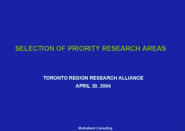 Title: SELECTION OF PRIORITY RESEARCH AREAS