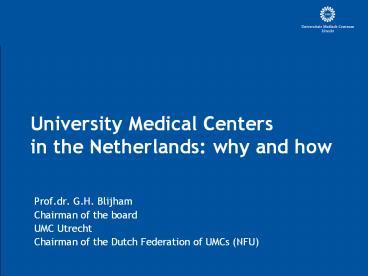Title: University Medical Centers in the Netherlands: why and how
