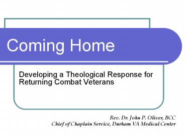 Combat Veterans - Rev. Dr. John P. Oliver, BCC