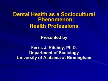 Title: Dental Health as a Sociocultural Phenomenon: