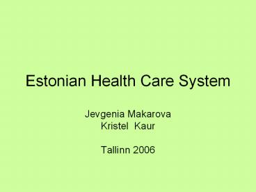 Title: Estonian Health Care System