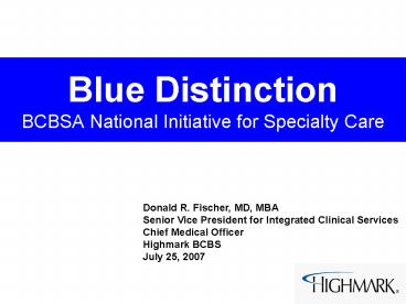 Title: Blue Distinction BCBSA National Initiative for Specialty Care