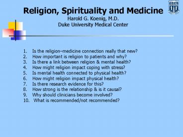 1Religion, Spirituality and Medicine Harold G.