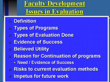 Title: Faculty Development Issues in Evaluation