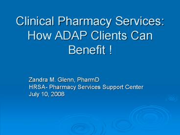 Title: Clinical Pharmacy Services: How ADAP Clients Can Benefit !