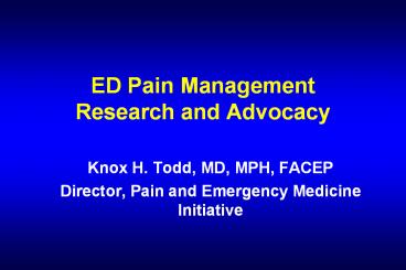 strategies should be developed. - Ongoing research in the area of ED patient pain