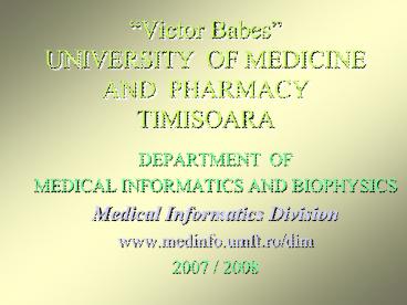 1Victor Babes UNIVERSITY OF MEDICINE AND