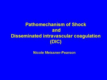 Title: Pathomechanism of Shock and Disseminated intravascular coagulation DIC
