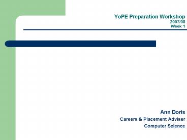 Careers YoPE Website www.cs.qub.ac.uk/yearout
