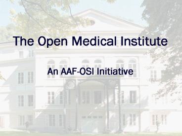 Title: The Open Medical Institute An AAFOSI Initiative