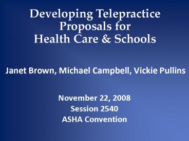 1Developing Telepractice Proposals for Health