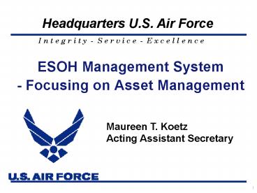 1ESOH Management System- Focusing on Asset