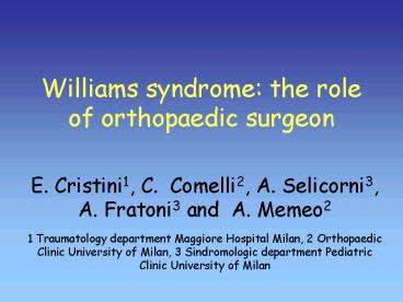 Williams syndrome: the role of orthopaedic surgeon PowerPoint PPT Presentation