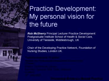 practice development and professional development - - McSherry Basset (2002) Team working and