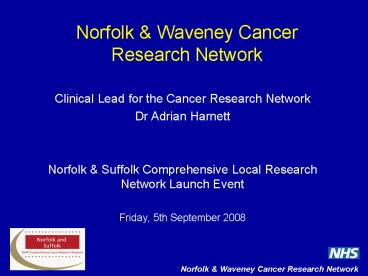 8Norfolk Waveney Cancer Research Network (NWCRN)