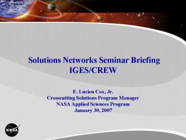 1 Solutions Networks Seminar Briefing IGES/CREW