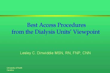 Title: Best Access Procedures from the Dialysis Units Viewpoint