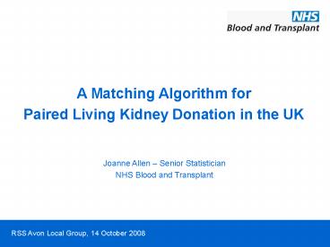 Joanne Allen Senior Statistician NHS Blood and