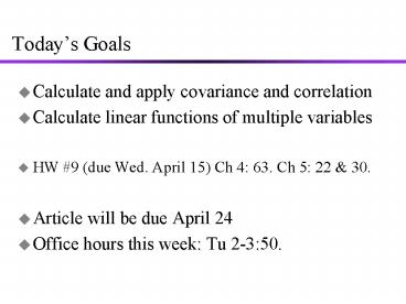 - HW 9 (due Wed. April 15) Ch 4 63. Ch 5 22