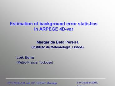 Title: Estimation of background error statistics in ARPEGE 4D-var