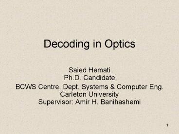 Decoding in Optics PowerPoint PPT Presentation