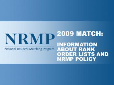 12009 MATCHINFORMATION ABOUT RANK ORDER LISTS
