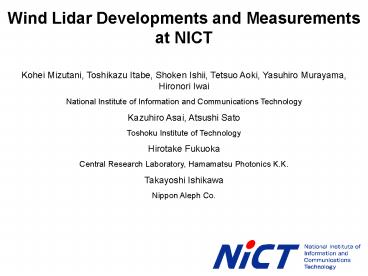 NICT Kohei Mizutani, Toshikazu Itabe, Shoken
