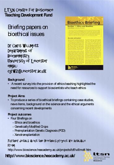 Briefing papers on bioethical issues PowerPoint PPT Presentation