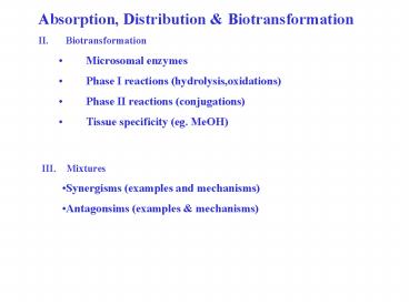 • Absorption, Distribution Biotransformation