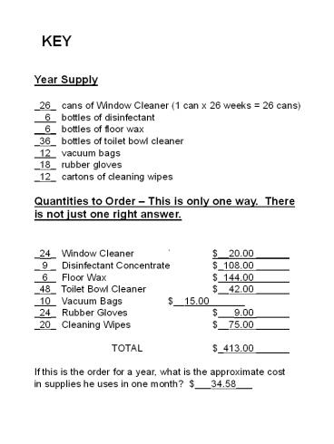 disinfectant __6_ bottles of floor wax _36_