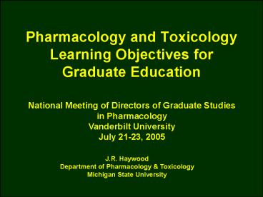 Title: Pharmacology and Toxicology Learning Objectives for Graduate Education
