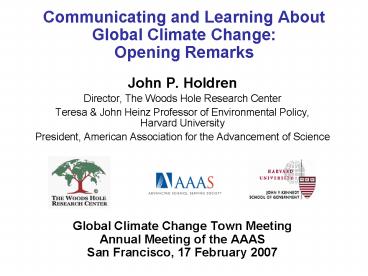 Title: Communicating and Learning About Global Climate Change: Opening Remarks
