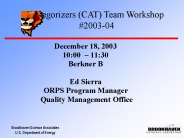 Categorizers CAT Team Workshop PowerPoint PPT Presentation