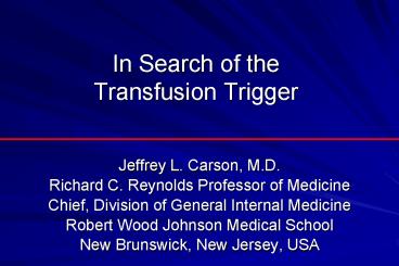 with cardiovascular disease is unknown - Careful assessment of the need for transfusion in