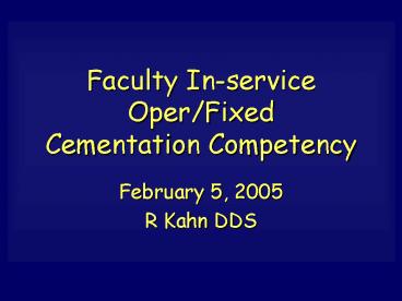 Faculty Inservice OperFixed Cementation Competency PowerPoint PPT Presentation