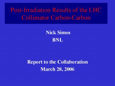 Title: PostIrradiation Results of the LHC Collimator CarbonCarbon